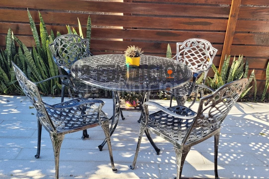 $ 1.072.950,00El precio actual es: $ 1.072.950,00.Chateau Ø1 mt x 4 Sillones | Juego de Jardín Aluminio Fundido